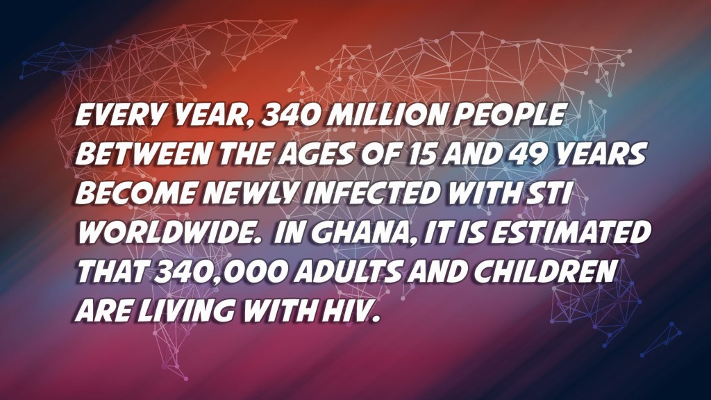 Of all the benefits we get from sex, sexually transmitted infections (STIs) are most certainly not one of them. The World Health Organization (WHO) has indicated that every year there are about 357 million new infections globally. A further breakdown of the statistics suggest that over 1 million people get infected with STI daily. Every year, 340 million people between the ages of 15 and 49 years become newly infected with STI worldwide. In Ghana, it is estimated that 340,000 adults and children are living with HIV.
