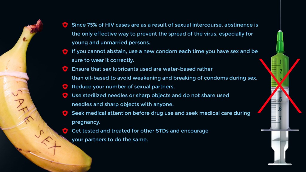 Today, we begin our series on Sexually Transmitted Infections by looking at the most common virus known to human beings – HIV/AIDS. It is considered as the most common STI/STD among women and men. Globally, approximately 37 million people are living with HIV, with about 70% of these living in Sub-Saharan Africa. Various studies across the world suggest a high rate of HIV/AIDS cases among young people aged 15–24 years, with females being the most affected. Data from these surveys suggest that 91% of reported global HIV-positive cases among children can be found in Africa. Due to the high incidence of HIV cases in the region, Sub-Saharan Africa is considered as the epicenter of the global pandemic. A survey conducted in 2016 in Ghana indicated a prevalence rate of 2.4%.