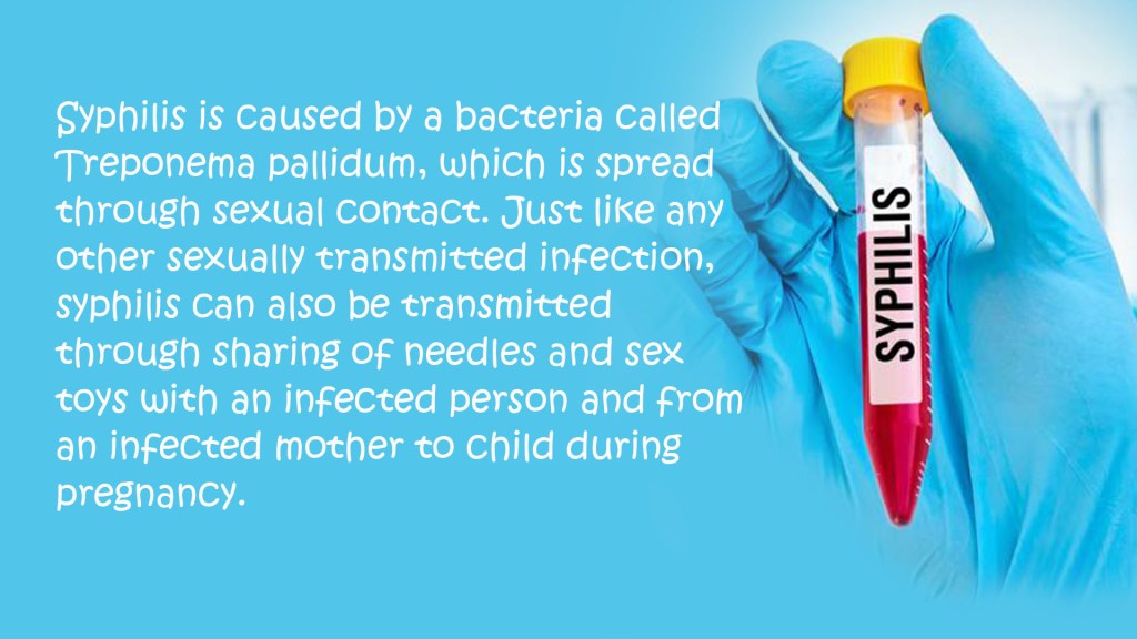 We continue our series on STIs/STDs by taking a critical look at some facts about Syphilis – another challenging infection. Syphilis is caused by a bacteria called Treponema pallidum, which is spread through sexual contact. Just like any other sexually transmitted infection, syphilis can also be transmitted through sharing of needles and sex toys with an infected person and from an infected mother to child during pregnancy. It causes infectious sores and rashes on or around the penis, vagina, and anus and in the mouth.