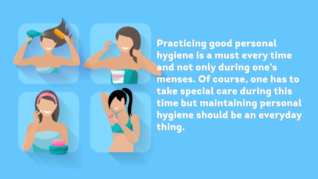 For example, you can easily overlook trimming your nails and shaving armpit and pubic hairs, when you are busy with other things. So, you can add these to your hygienic practices during your menses. And because menstruation is cyclic, being able to trim your nails and shave your pubic and armpit hairs, become a regular practice.